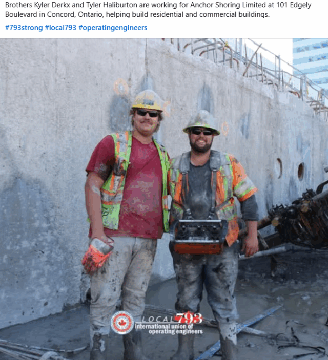 Brothers Kyler Derkx and Tyler Haliburton are working for Anchor Shoring Limited at 101 Edgely Boulevard in Concord, Ontario, helping build residential and commercial buildings.