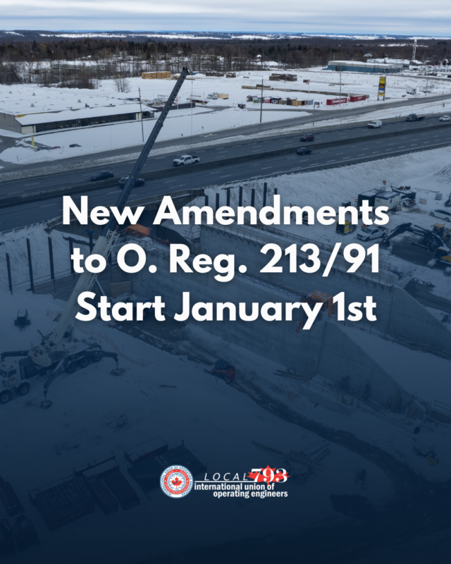 Two important amendments to Ontario Regulation 213/91 for Construction Projects come into force on January 1, 2026, that directly effect the health and safety of Local 793 members.
